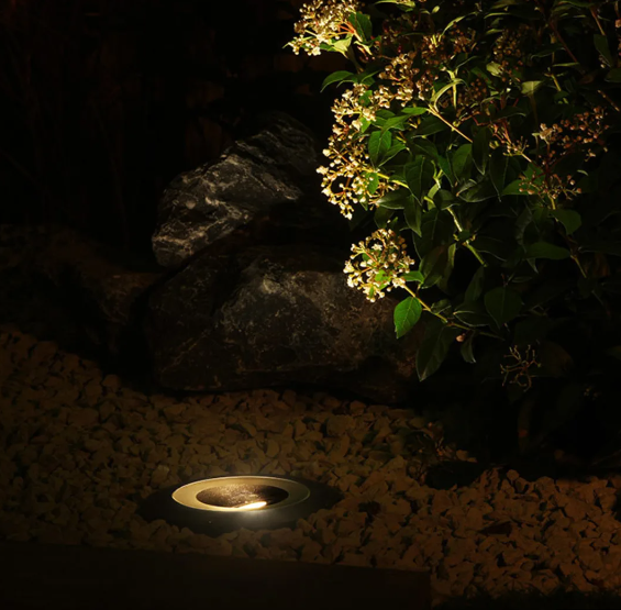 / Spot encastrable RUBUM 12 Volt, Aluminium Noir – puissant pour éclairage de sujet – LED 5W Blanc chaud – diam 160 mm x Haut 110 mm